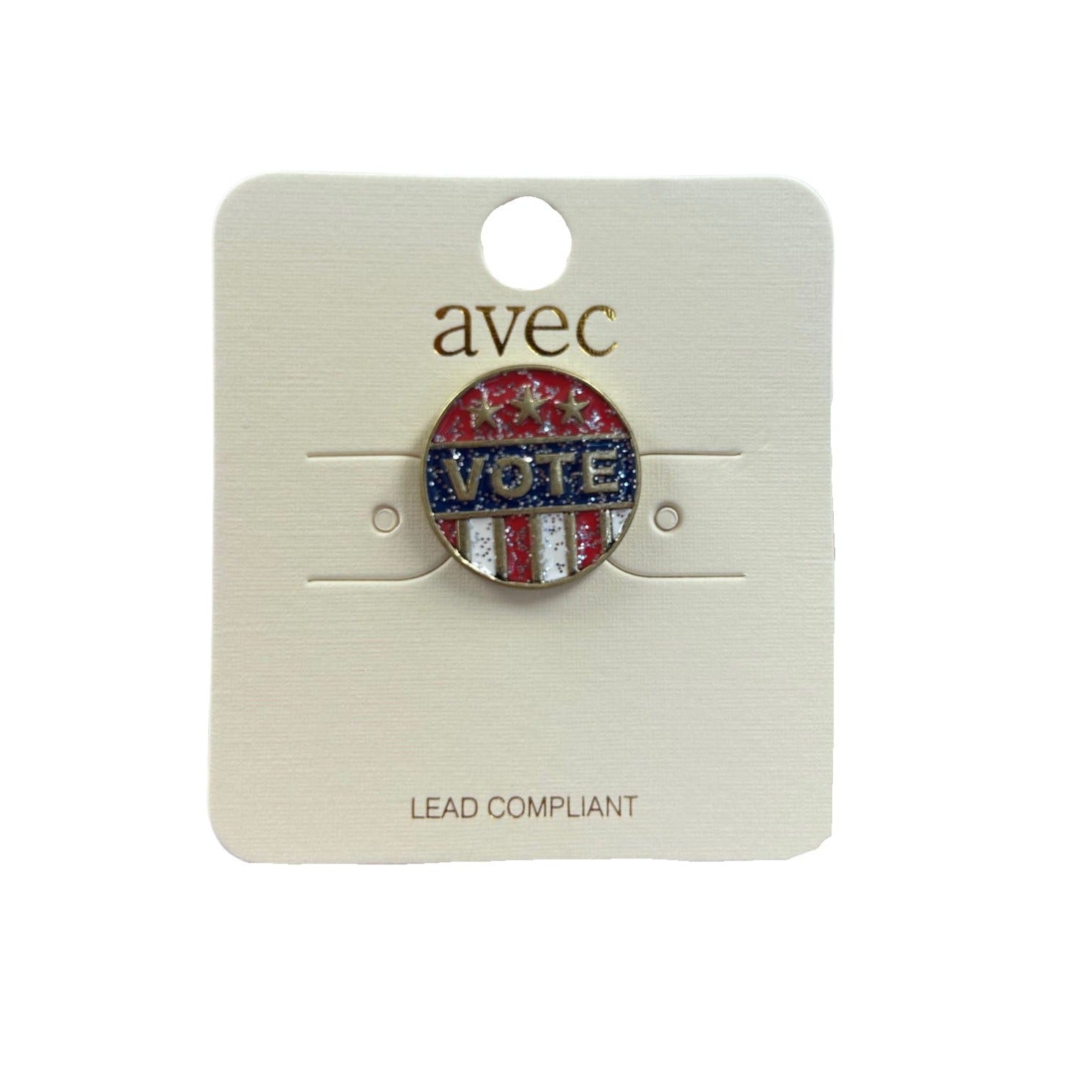 Wear this VOTE pin and show off your civic duty in style! With a glittering finish in red, white, and blue, this pin is the perfect accessory for 4th of July festivities. Plus, it comes in gold and silver options for a touch of class. Pin it on your clothes, bag, or hat to make a statement and encourage others to vote!