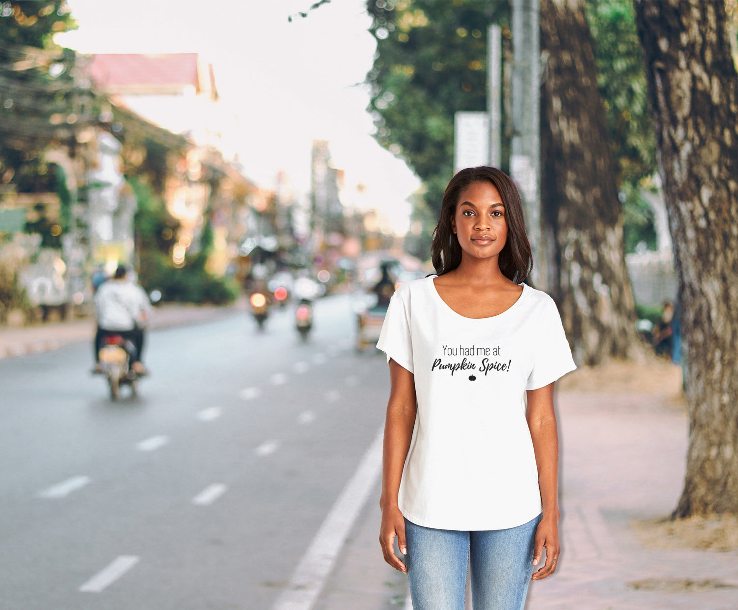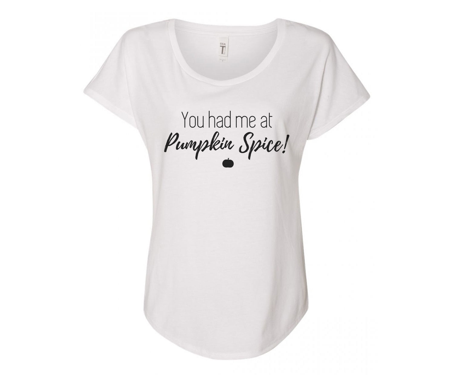 You Had Me At Pumpkin Spice Ladies Tee Shirt - In Grey & White